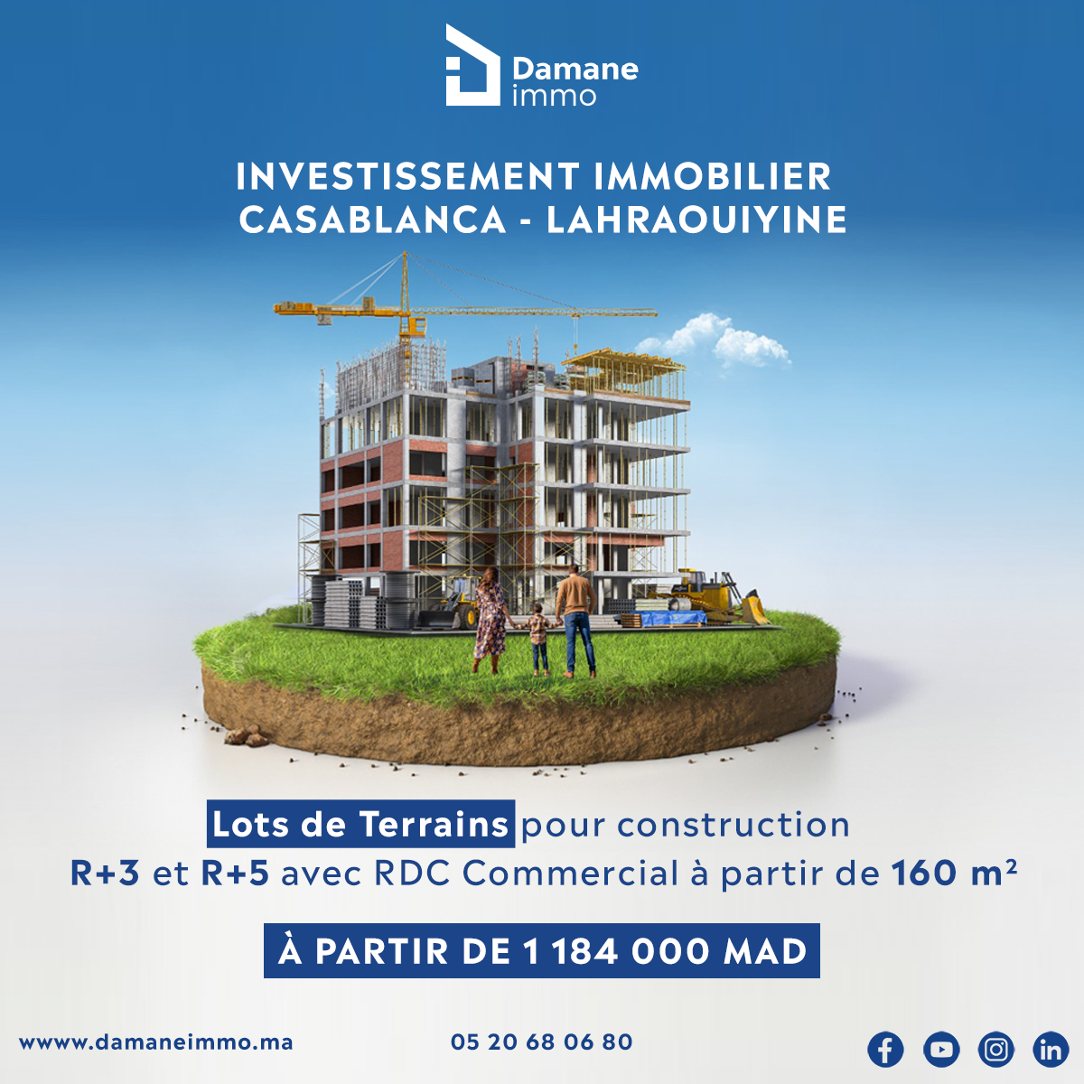 Damane immo vous propose plusieurs lots de terrain à acquérir afin de donner vie à votre projet immobilier en R+3 ou R+5 avec un RDC commercial à partir de 160m².